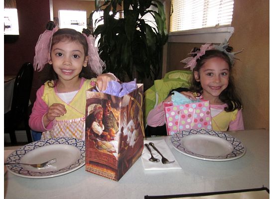 The last station was snack and then the craft: Build a Boat. The building materials were: plates, bowls, craft sticks, egg cartons, toilet paper roll, straws, feathers, flowers, pipe cleaners and much more. Princess A made a very tall boat (you can see the straws standing up in the picture.) Princess G made a small one that can twirl, she taped a clothespin standing up on the bottom as a handle (I still need to find it in the car where it fell off.)They also each got a little gift to commemorate the occasion.